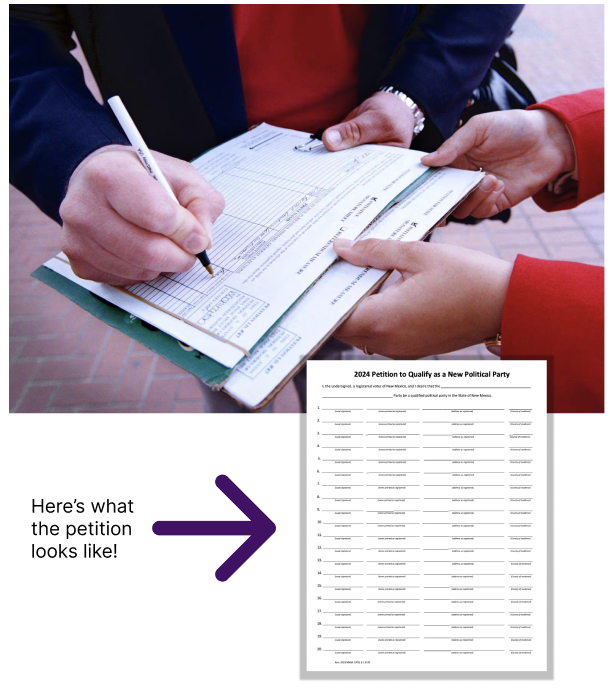 Our first goal is to be recognized by the State of NM as an official political party. To do this, we need 3,500 signatures from registered voters in NM.